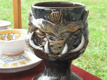 Commissions are welcome. Do you see a mug you want, but you would love to see your heraldry on it? We can make that happen! Do you see a piece you love but you lost your heart to a different glaze? We can do that too. Last but not least, we have done some amazing custom products for people, from small statuary to projects to specifications. Look at the gallery for some examples!